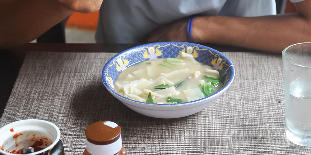 An authentic dish of Sikkim cuisine, Thenthuk is made from hand-pulled noodles that are cooked with vegetables or meat seasoned with local spices and chillies.